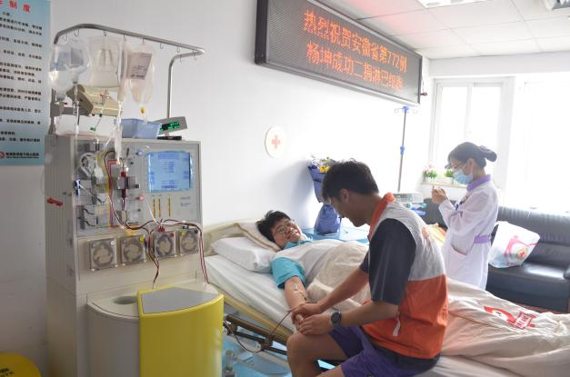 为延续血液病患者生命希望,传递医者仁心的大爱情怀,6月25日上午,在弋矶山医院血液内科病房内,公共卫生学院预防医学专业2023级学生杨坤顺利完成淋巴细胞捐献,成为安徽省第772例、芜湖市第49例、我校在校大学生第7例捐献者。这是他继为血液病患儿捐献造血干细胞后,第二次为患者挺身而出,成为芜湖市首例完成二次捐献的在校大学生。