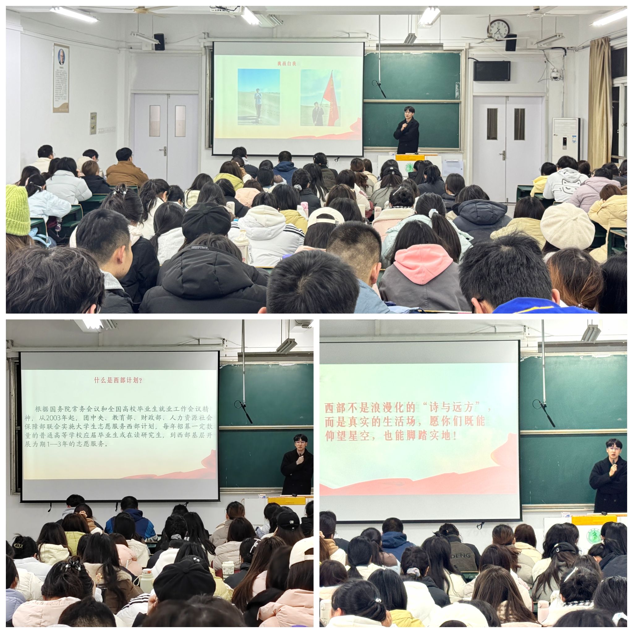 在全国第62个学雷锋日暨第26个中国青年志愿者服务日来临之际,3月4日,人文与管理学院邀请2024届法学专业校友、西部计划志愿者赵庆伟重返母校宣讲志愿服务精神。讲座由学院团委书记张露主持,全院各年级120余名同学参加。