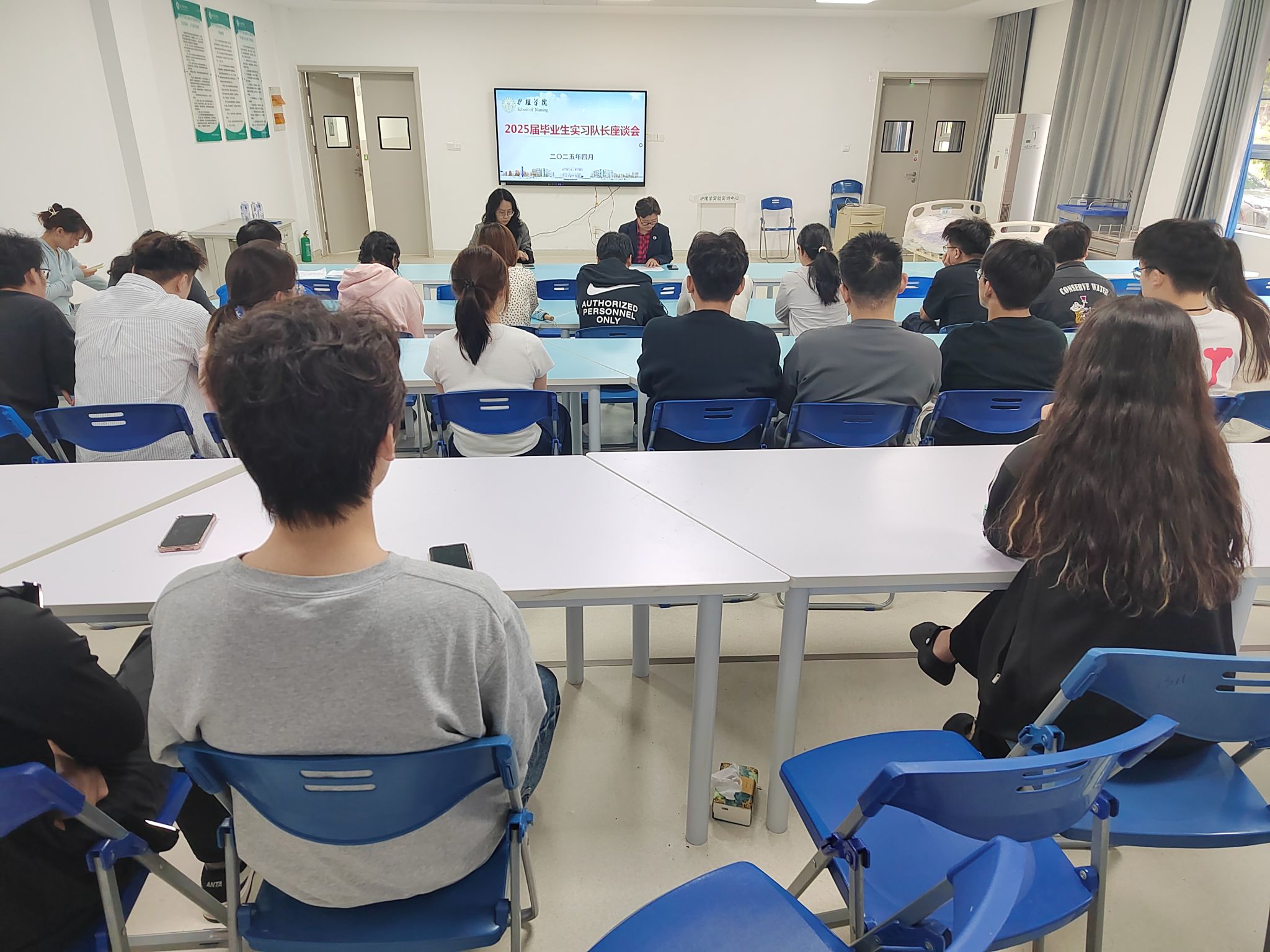 为进一步了解2025届毕业生实习带教情况,提高实践教学水平,4月23日上午,护理学院在滨江校区南区一号楼智慧教室召开毕业年级实习队长座谈会。护理学院党委副书记王亚娟、副院长崔慧霞和实习工作秘书、各实习队长参加会议。会议由崔慧霞主持。