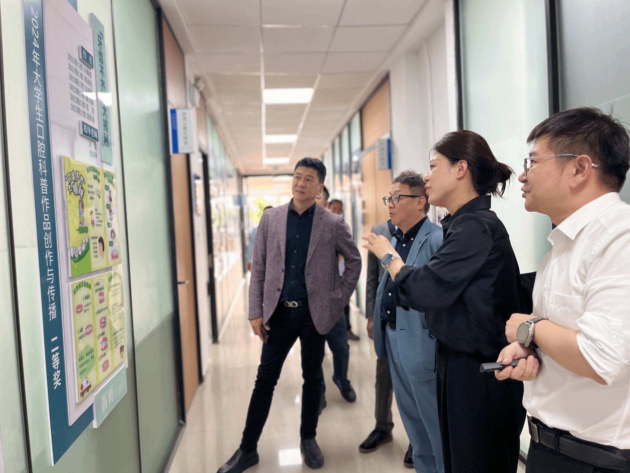 随后,双方开展了座谈,围绕中日口腔医学教育体系、牙科医生职业规划等议题展开交流。日本专家分享了日本齿科医学的最新技术进展及博士培养机制,邓超介绍了学院的发展历史与人才培养模式。双方表示,期待有机会开展教学、临床、师生访学等形式的合作。