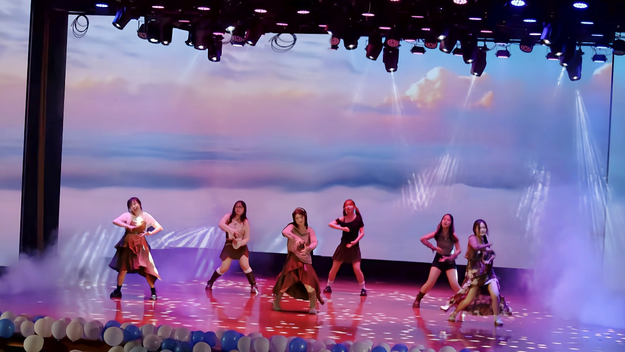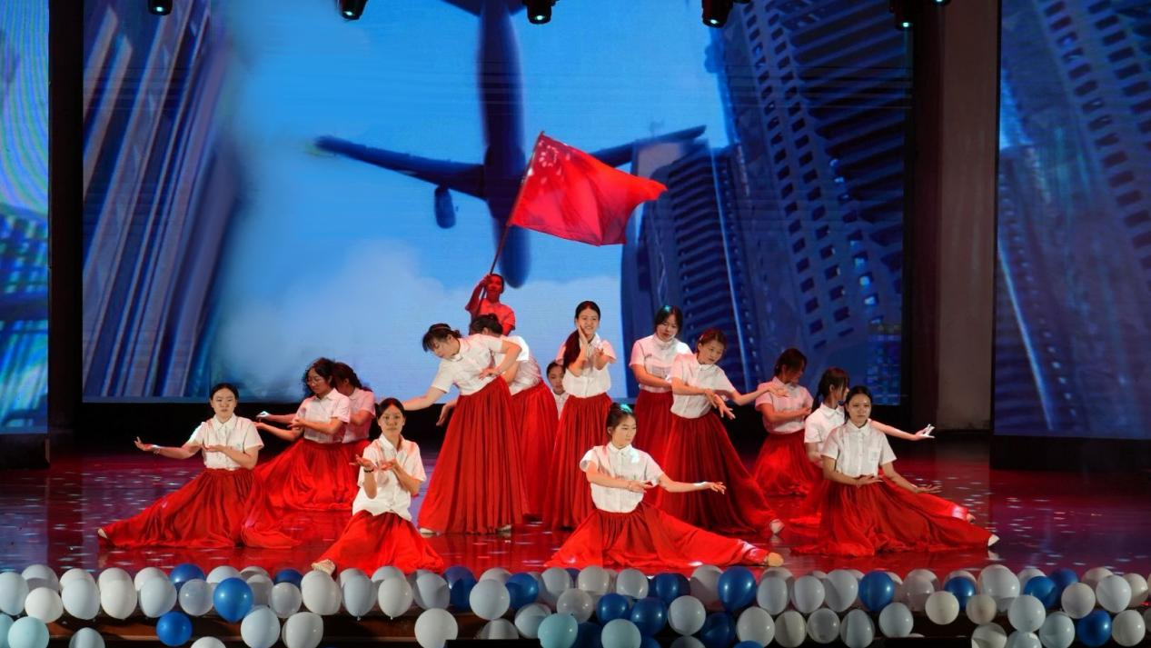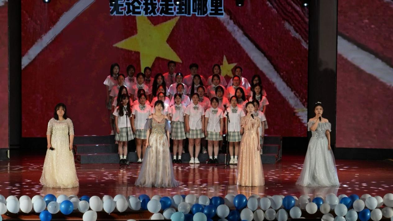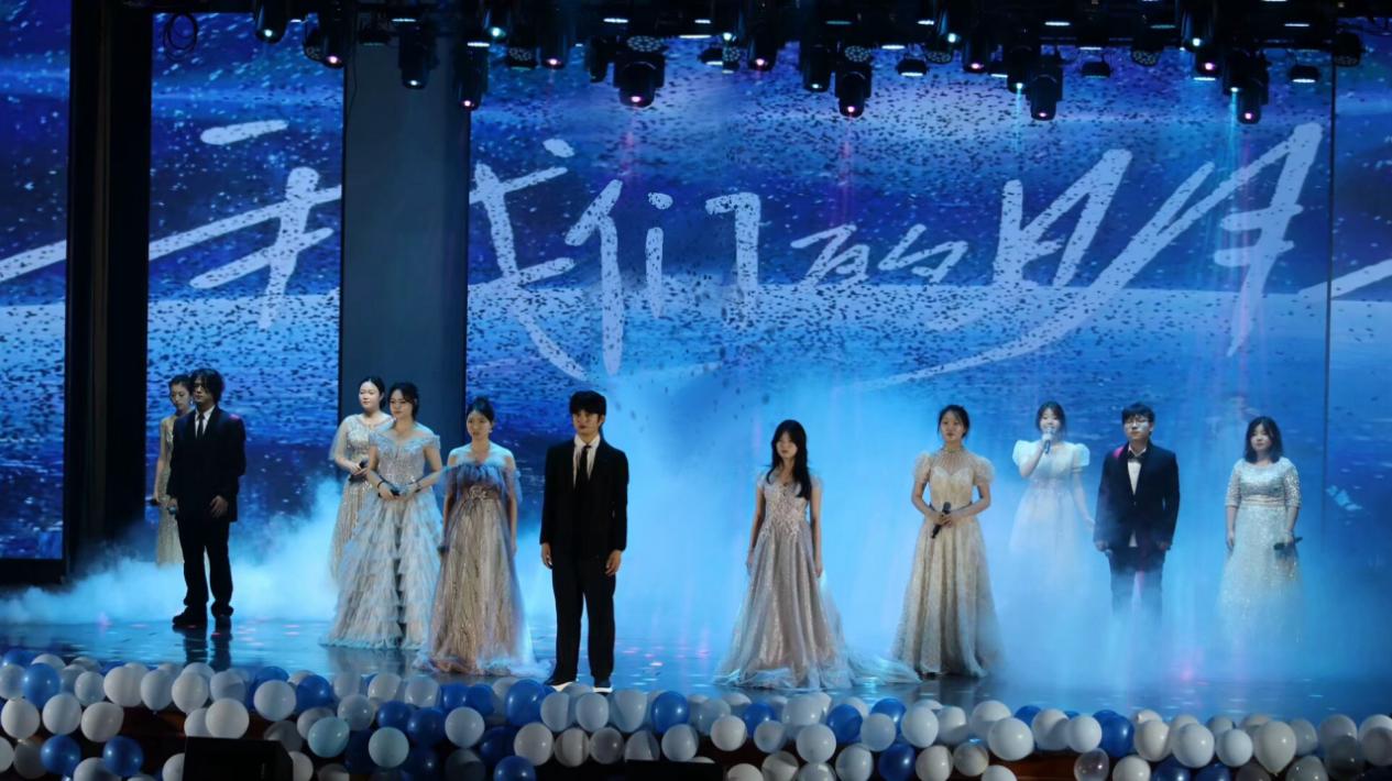 “向·明日荣光”篇章,点燃逐梦之火。《diamond girls》用活力四射的舞姿,诠释青春的无限可能;《醉墨离歌》以流行编曲展示中华传统文化,用音乐架起古今的桥梁;《黑白光影里的青春独白》铿锵的朗诵声中,饱含着对每一位毕业生未来最真诚的祝福。在温情献花环节,毕业生代表向毕业班辅导员和教师代表分别献上鲜花,将莘莘学子对母校的眷恋、对师长的感恩化作深深鞠躬,将晚会推向高潮。尾声《文昌西路的日子》唤起对校园地标的记忆;随着《我和我的祖国》旋律响起,全场挥舞的荧光棒汇成星海,在合唱声中将青春理想融入家国情怀,毕业生们将携梦出发,奔赴明日荣光。
