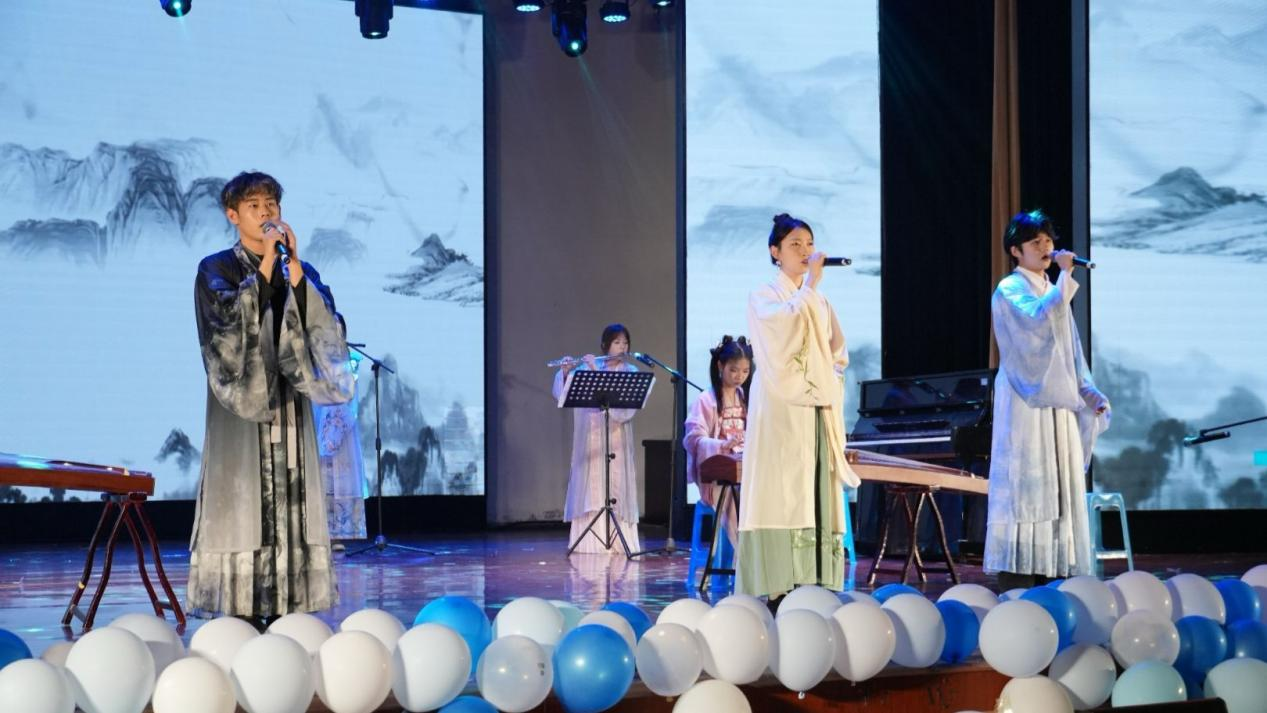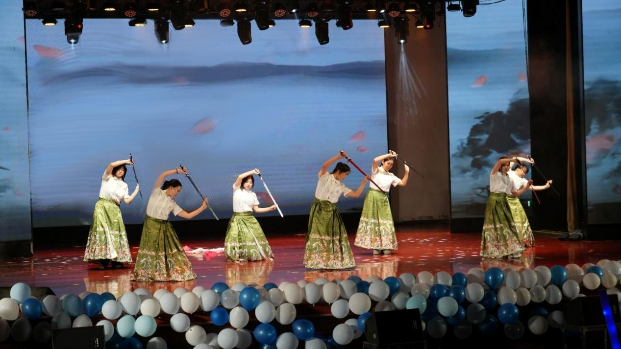 文艺汇演开篇“忆·初见韶光”,以激情洋溢的舞蹈点燃舞台,动感节奏里,跃动着初入校园的懵懂与热忱;《我们的明天》旋律轻扬,勾起同窗间初次相遇的青涩记忆;《木兰》以飒爽的剑舞,诠释医学生如木兰般“朔气传金柝,寒光照铁衣”的勇敢无畏;《青案春歌》悠悠响起,飘扬华服与翩跹舞步的交织里,中华传统之美的画卷徐徐展开。