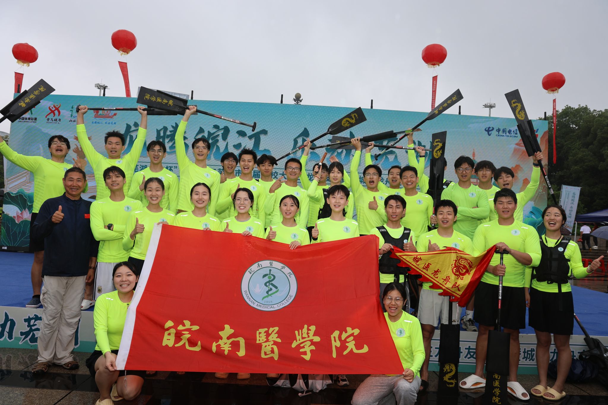 6月23日,“龙腾皖江  乐动芜湖”2025年芜湖市首届高校大学生龙舟赛在镜湖激情开赛。我校龙舟队首次组队参赛,便凭借顽强拼搏的精神斩获比赛二等奖,展现出强大的发展潜力。