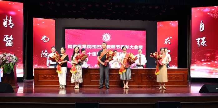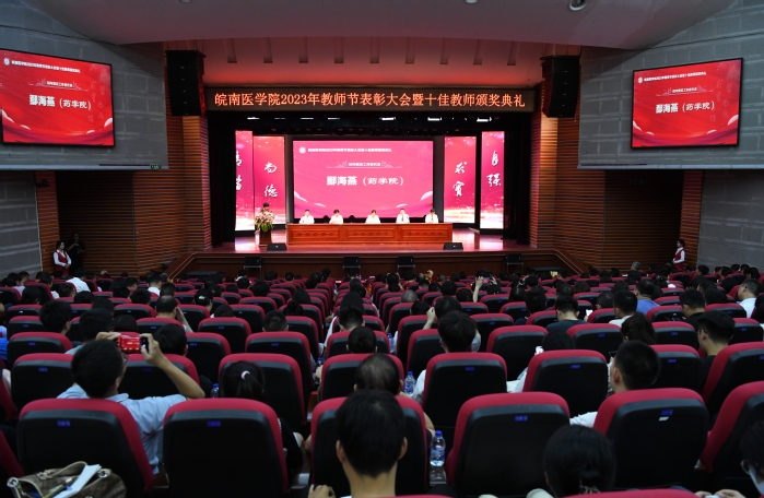 弘扬尊师重教传统,强化榜样引领感召,在全国第39个教师节来临之际,9月8日下午,我校在大学生活动中心礼堂召开第39个教师节表彰大会暨“十佳教师”颁奖典礼,对一年来取得优秀成绩教师、“十佳教师”提名人选和30年教育工作者进行表彰,并对学校首届“十佳教师”获得者进行颁奖。在校校领导夏劲松、姚应水、贾贤燕、王保中、韩永升出席表彰大会。大会由党委副书记、院长姚应水主持。