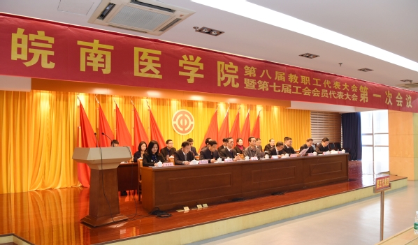 承先启后开阔步,砥砺奋进续华章。在全校上下深入学习贯彻党的十九大精神和校第八次党代会精神之际,2018年3月24日上午,我校八届一次教代会暨七届一次工代会在图书信息楼学术报告厅胜利开幕。138名代表肩负使命,齐聚一堂,共谋发展。省教科文卫体工会主席凤桦,校领导王先俊、章尧、李刚、刘人人、廖圣宝、吴金月、郑兰荣,校党委委员方国庆、陈斌、徐朝阳,学校部分老领导和大会主席团成员在主席台就座。中国科学技术大学、合肥工业大学、安徽师范大学等43所兄弟院校和单位发来贺信贺电。