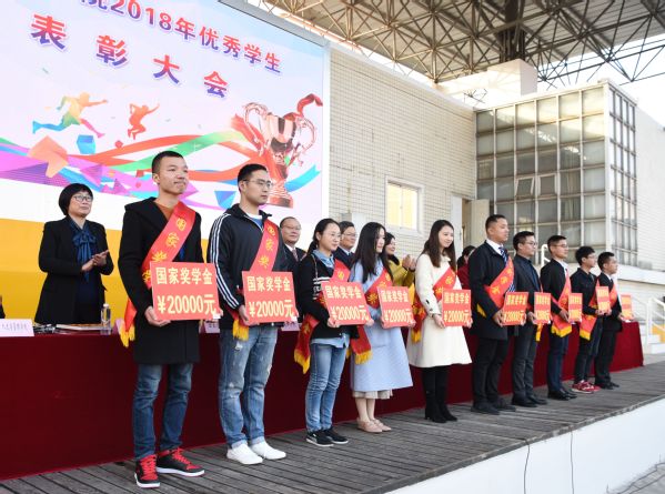 在欢快喜庆的旋律中,参会领导为国家奖学金、国家励志奖学金、学校奖学金、三好标兵、三好学生、优秀学生干部、优秀学子、优良学风班获奖学生代表颁奖。