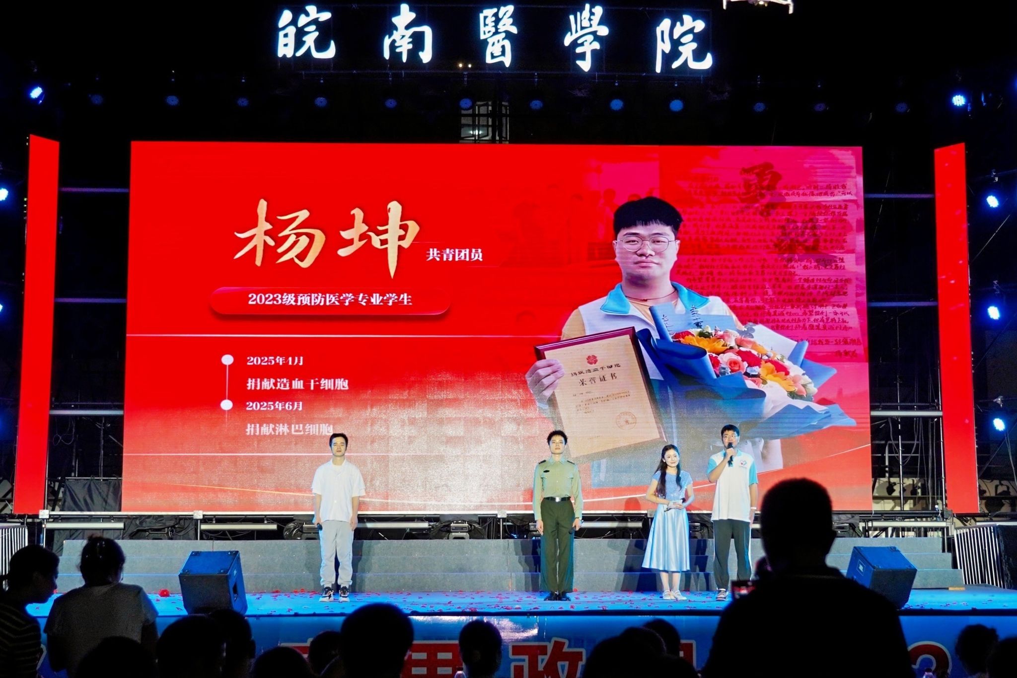 与祖国共命运、与时代同步伐、与学校齐发展,作为我校“医路花开”文化育人品牌中的重要活动,“你好,皖医”青春思政课暨迎新晚会已举办三届,通过“艺术+思政”“故事+榜样”的形式,用具有家国情怀、文化底蕴和皖医气质的“青春思政课”,引导皖医学子强化责任担当、明晰成长航向、积蓄奋进动能,立志成长为怀揣理想、仁心仁术,敬畏生命、甘于奉献,不负时代、勇毅前行的新一代皖医人。青春的序曲已然奏响,奋斗的征程正在开启,2025级新学子将带着这份感动与力量,在医学殿堂中勇敢追梦圆梦,在学校高质量发展的新征程上,奋力书写青春最亮丽的篇章。(邵馨婷、王康淇/文  吴小婉、李晓晓/摄)