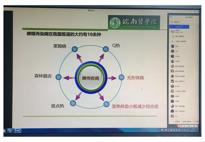 杨邦和博士以“蜱传无形体的分子流行病学调查研究”为题作学术报告。他指出,随着经济开发和人为开采,人和动物感染蜱传无形体的几率在增加,近年来已成为人们关注的焦点。报告详细讲解了皖南地区无形体分子流行病学特征,证实该地区动物存在较高的无形体感染率、混合感染、地理遗传分化等情况,表明该地区是无形体病潜在的自然疫源地,要加强本地区新发蜱传疾病的监测防控。整场报告思路清晰,内容丰富,给与会人员留下深刻印象。
