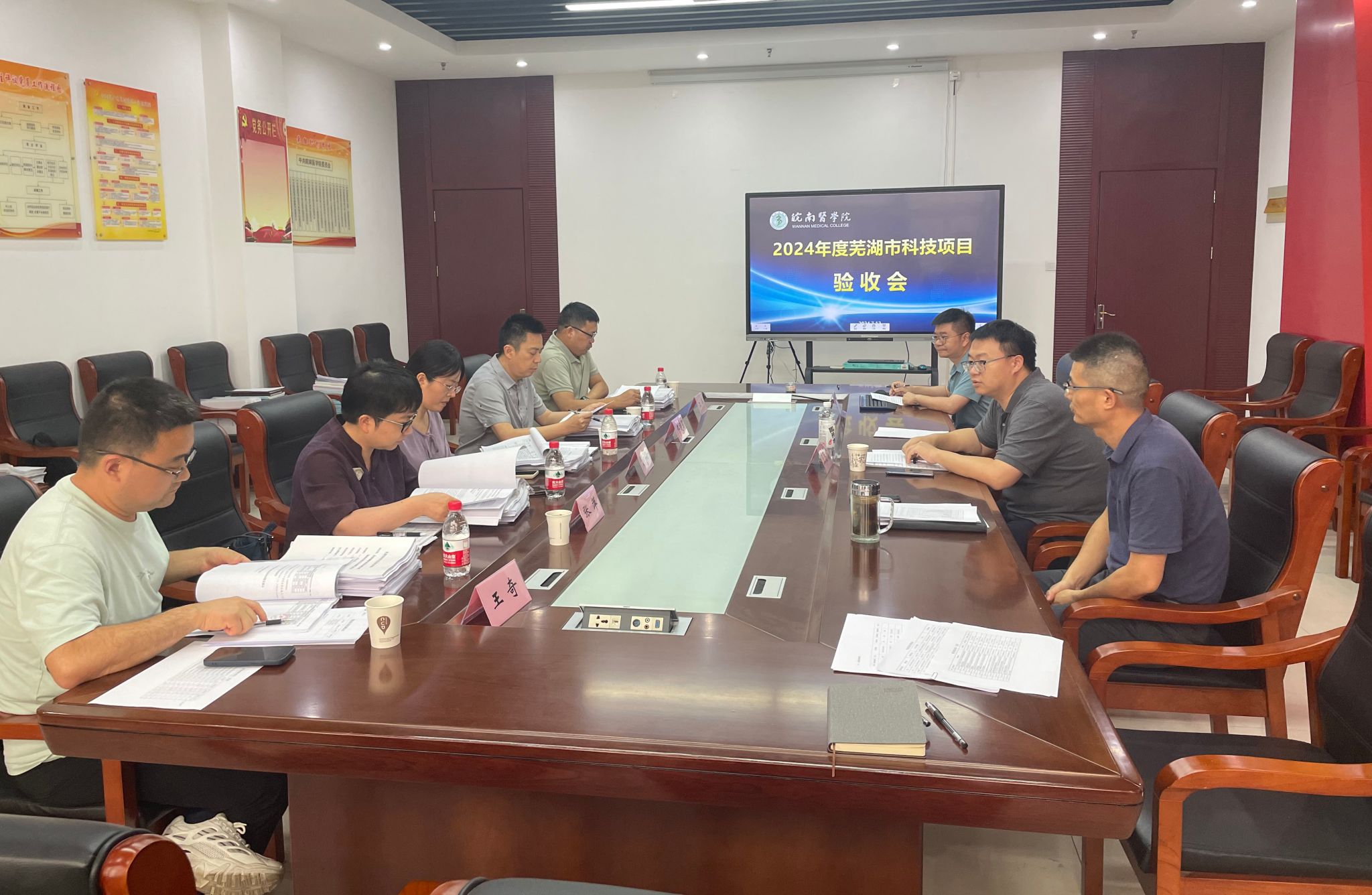 7月12日下午,受芜湖市科技局委托,学校在图书信息大楼党员活动室组织召开芜湖市科技计划项目验收会。芜湖职业技术学院、芜湖市食品药品检验中心、芜湖市第一人民医院等单位专家应邀参会指导。会议由科研处副处长王绍臻主持,相关项目负责人参加会议。