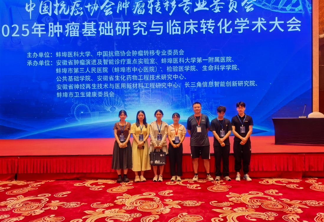 近日,由蚌埠医科大学和中国抗癌协会肿瘤转移专业委员会联合主办的2025年肿瘤基础研究与临床转化学术大会在蚌埠市召开,大会吸引了来自全国肿瘤研究领域的众多专家学者、临床医生及科研人员齐聚一堂,交流探讨学术最前沿知识。我校基础医学院相关教研室师生一行7人参加大会。